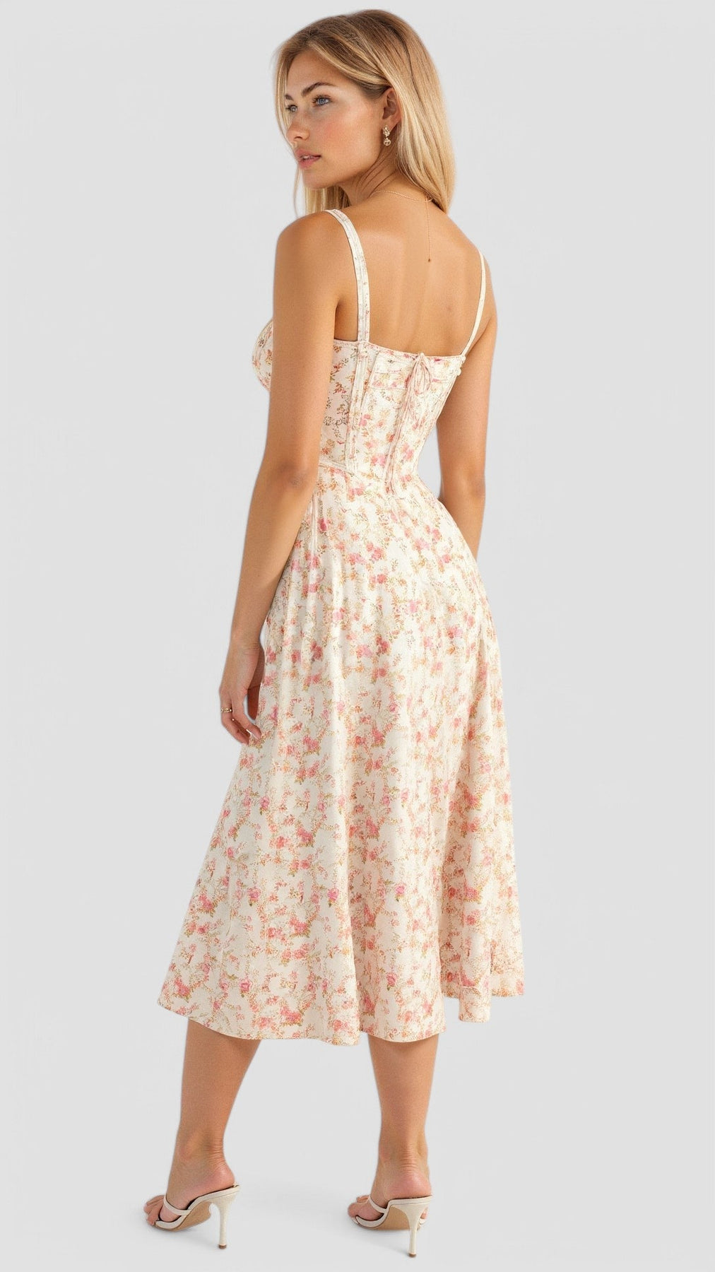 The Cianna midi dress combines a figure-enhancing corset with a flowing skirt, perfect for an elegant and refined look.