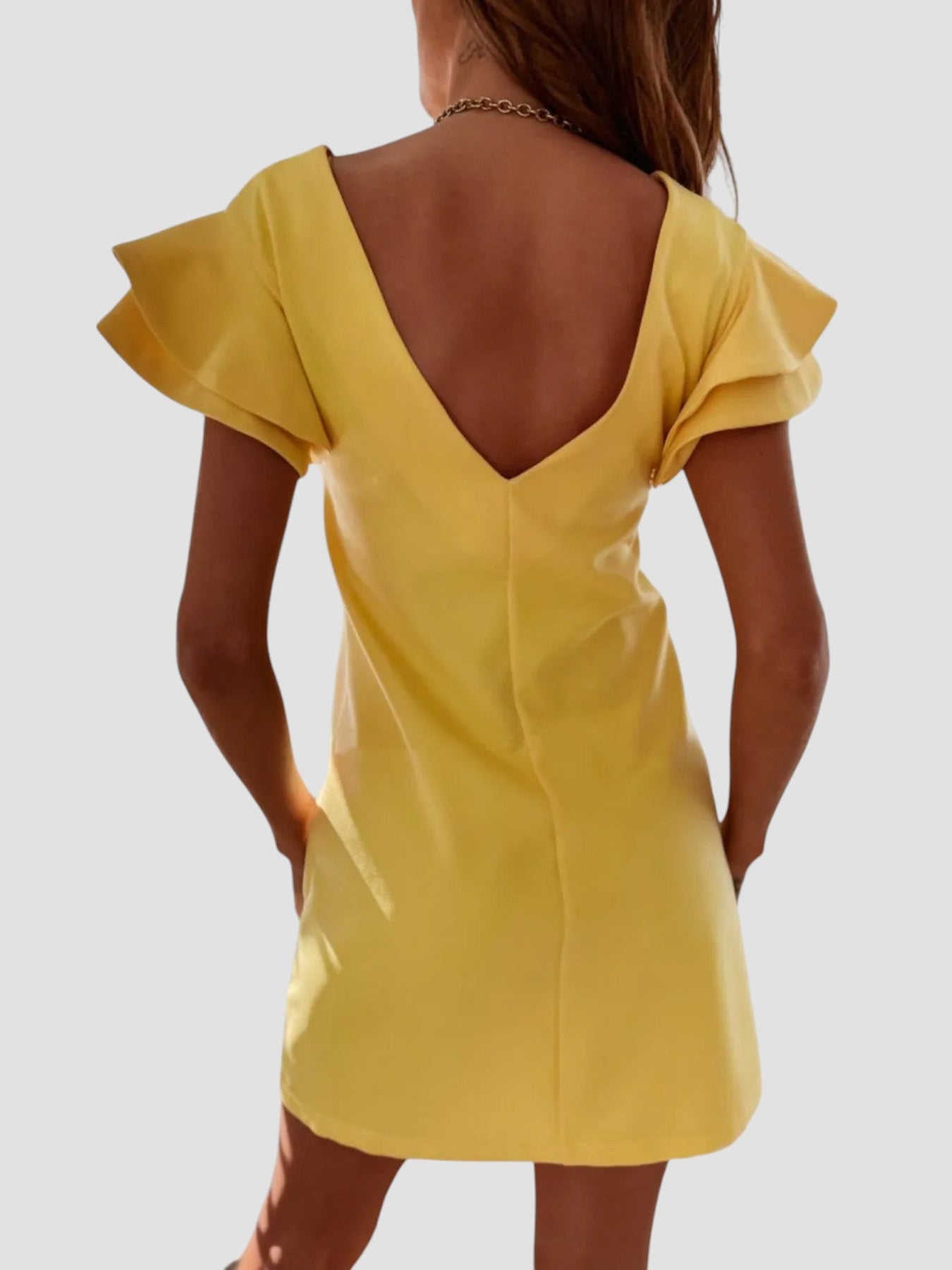 ‘Clarissa’ è l’abito ideale per chi cerca uno stile fresco e raffinato. Le maniche a doppio volant aggiungono un tocco femminile a una linea minimal perfetta per l’estate.