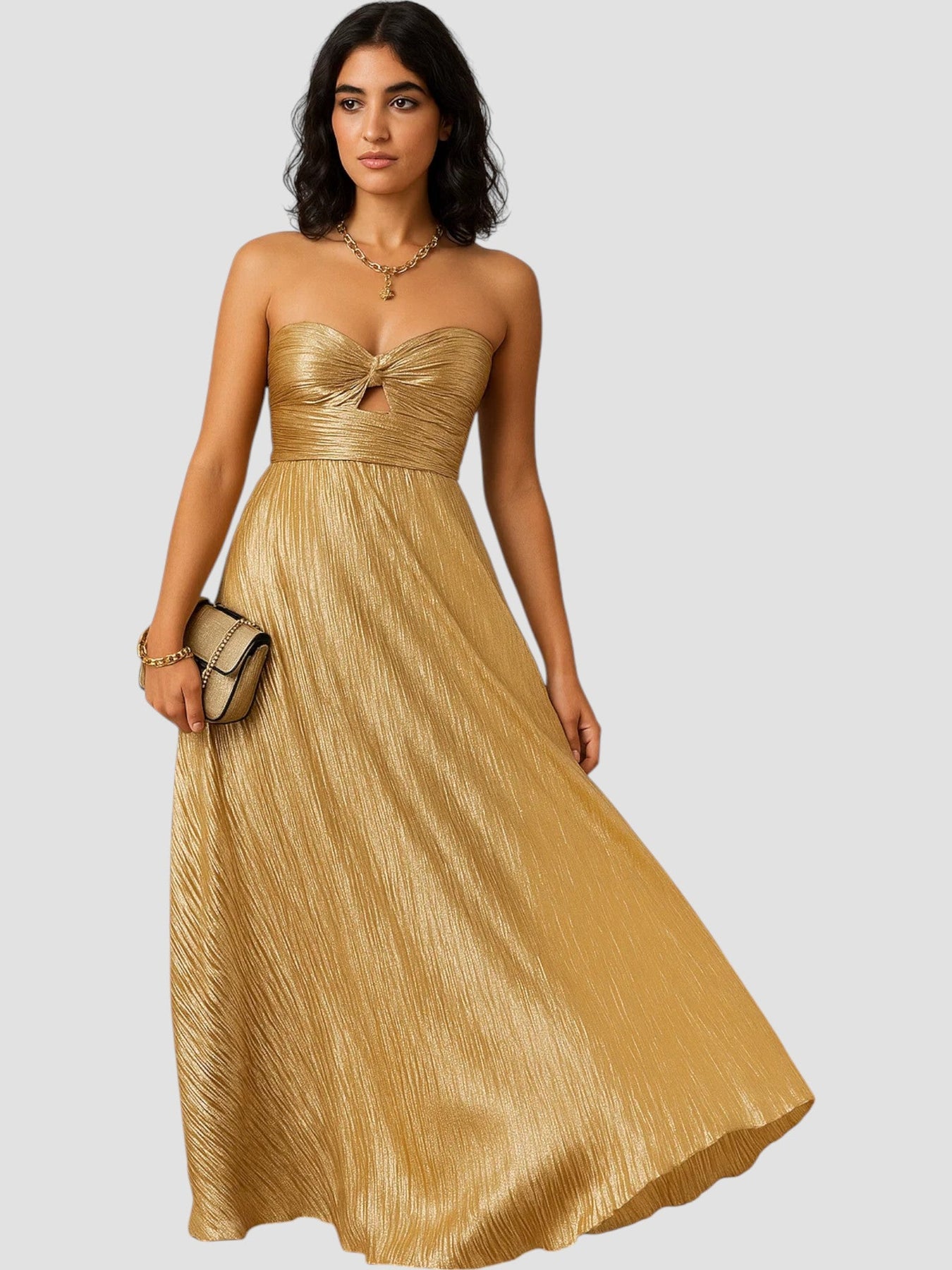 Fatti notare con Marie — l’abito perfetto per serate estive, matrimoni e cene eleganti. Il design off-shoulder valorizza le spalle, mentre la linea delicata esalta con naturalezza la silhouette.